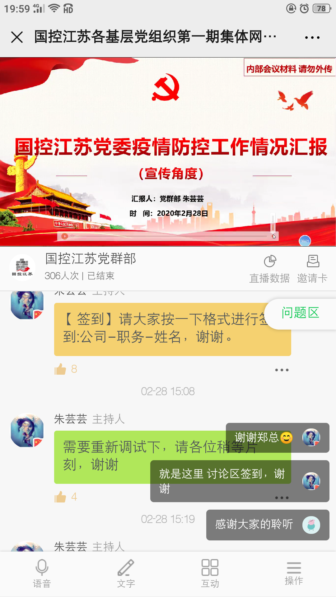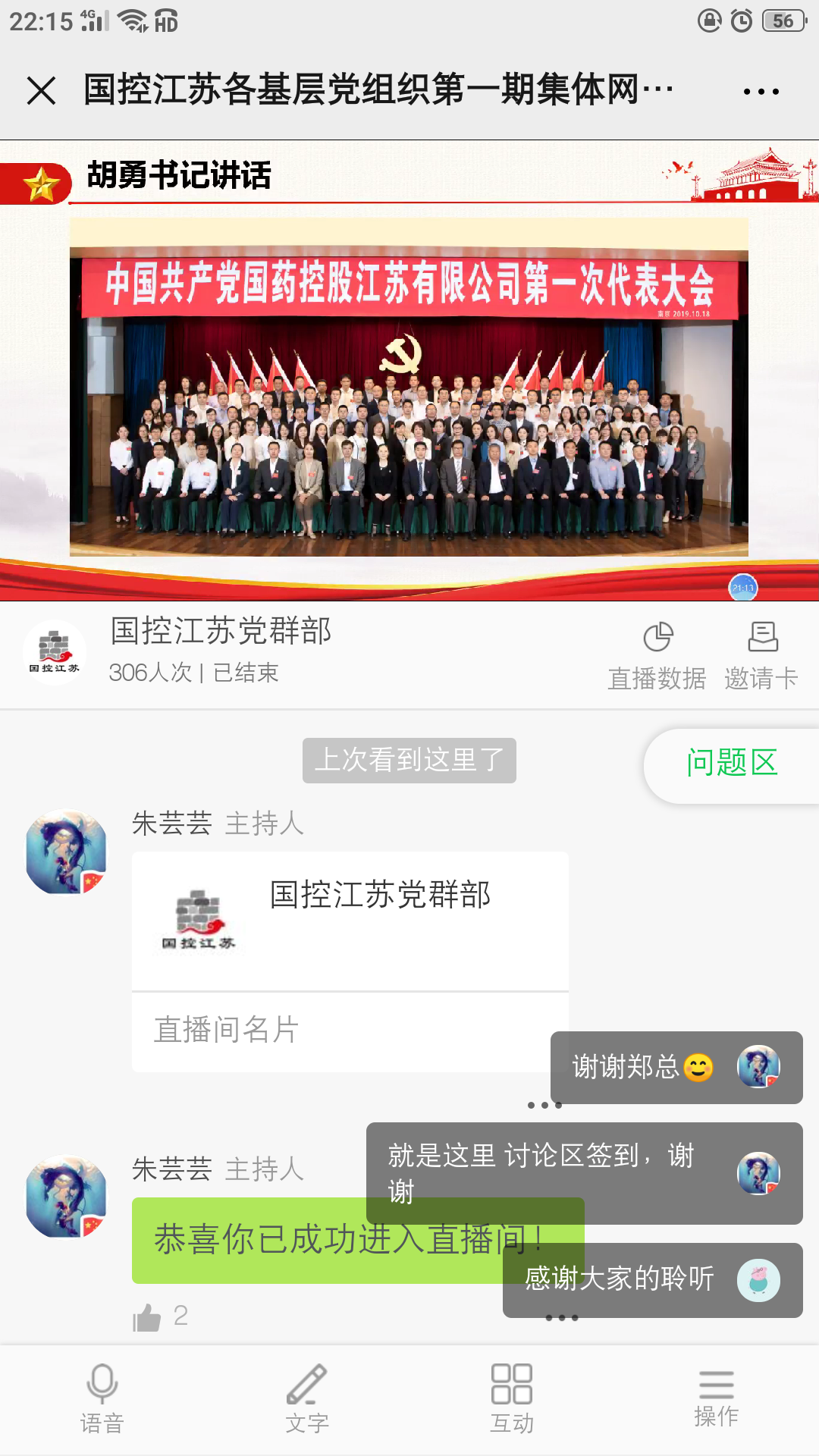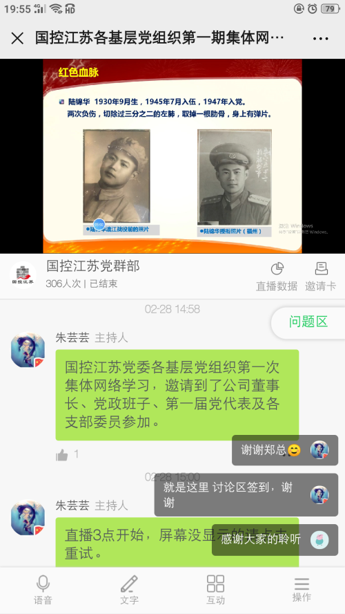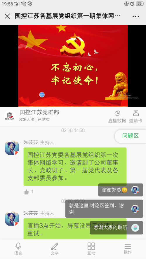 近日,国控江苏党委在抓好疫情防控工作的同时,积极组织党政班子成员、各支部委员、第一届党员代表、基层党员骨干等200余人参加了第一期集体网络学习,借助“互联网+党课”积极给广大党员干部充电。