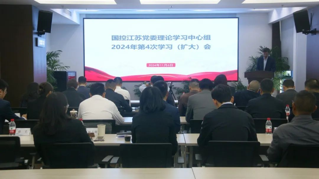 11月6日,国控江苏召开党委理论学习中心组第4次学习(扩大)会议,国控江苏中高层管理人员参加学习,党委书记陈原主持会议并讲话。