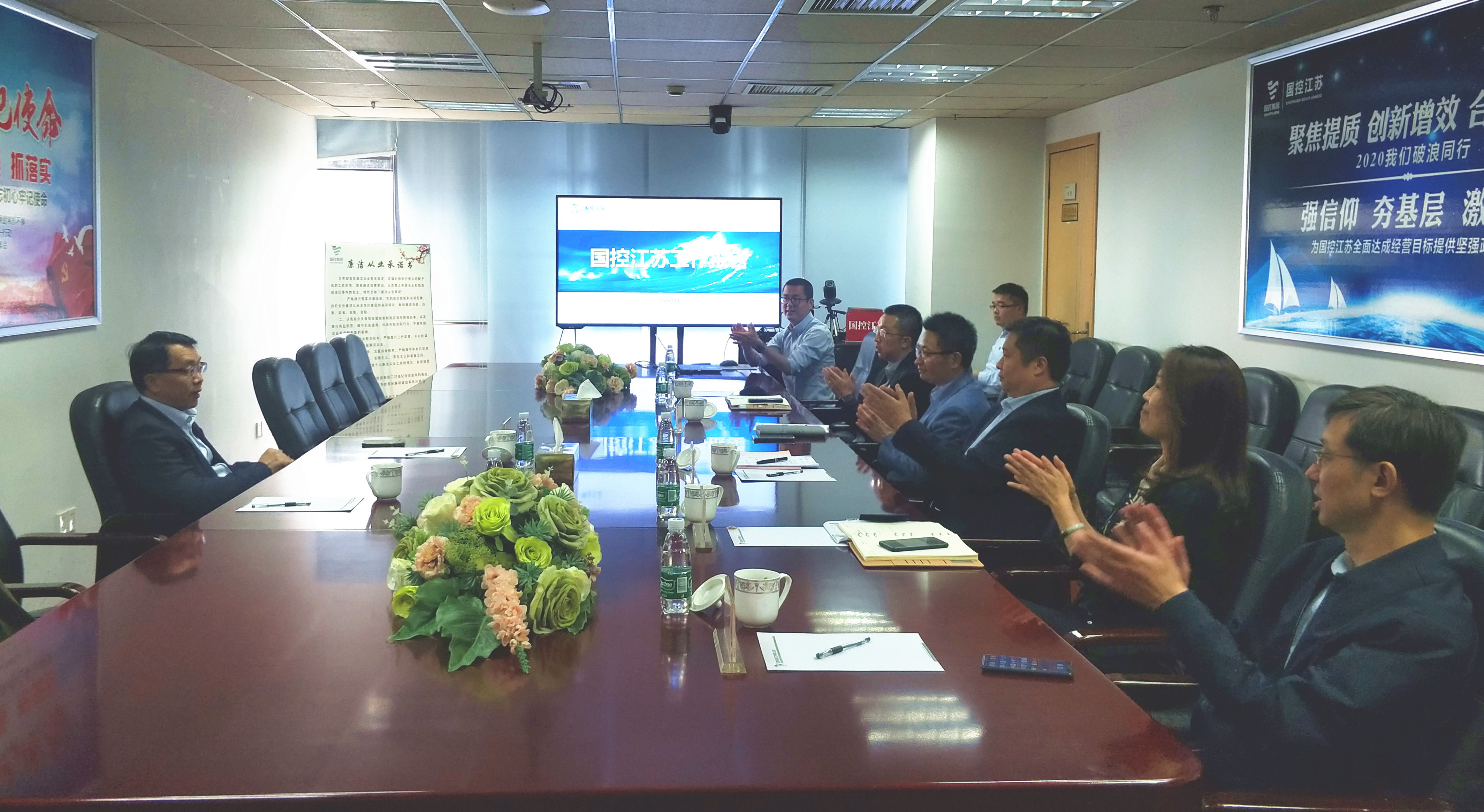 第二日,连万勇来到国控江苏进行调研,同国控江苏党政班子成员进行座谈,并听取了国控江苏党委书记胡勇、总经理曹志毅关于企业党建、经营、疫情防控等方面工作汇报。